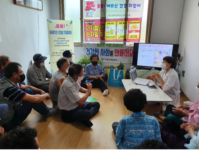 ‘출동! 어르신건강지킴이’ 사업으로 건강진단과 함께 자가혈관 숫자알기, 손씻기 요령 등 TV모니터 영상자료를 활용하여 교육함과 동시에 복지상담, 말벗서비스 등를 제공하고 함께한 어르신들에게 정서적 지지를 보냈다.