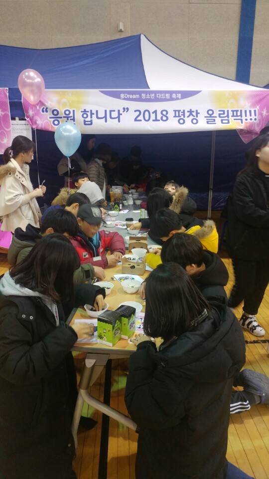 체험부스에는 다양한 청소년 봉사동아리가 참여해 올림픽 마스코트 액세서리 만들기, 페이스페인팅, 캘리크라피 성공기원 문구 적기 등으로 관심도를 제고하고 있다.