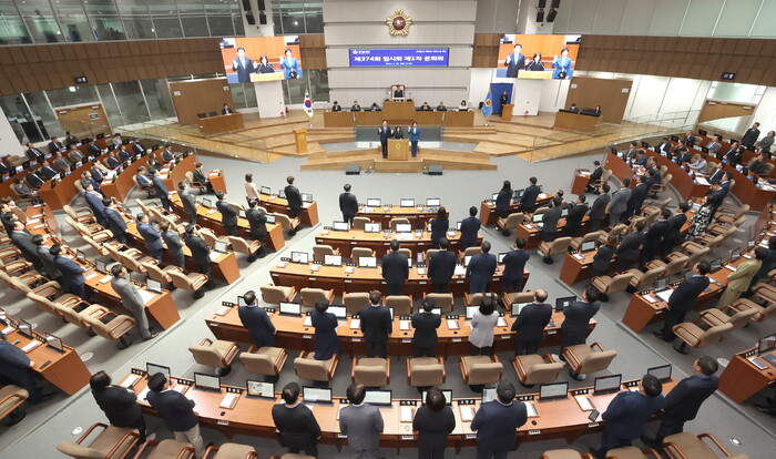 염 의장은 이날 도의회 본회의장에서 열린 제374회 임시회 제1차 본회의에서 개회사를 통해 “정쟁이 아닌 소통으로 국민의 신뢰를 회복하는 ‘국민의 국회’를 만들어 달라”라며 “지방의회 성장을 옥죄는 제도의 개선을 더는 외면해서는 안 될 것”이라고 말했다.