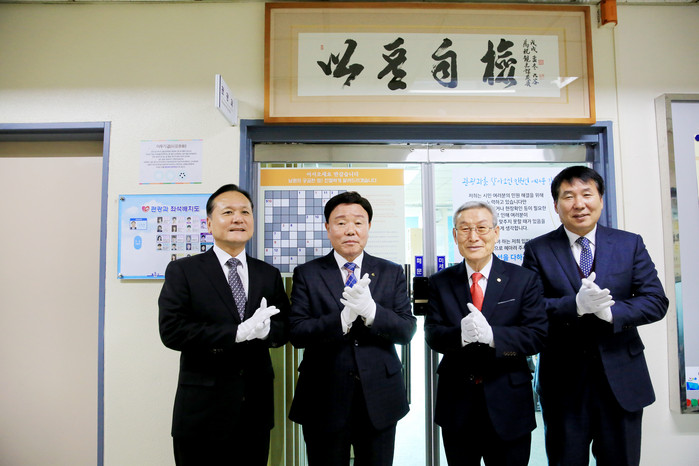 전북 남원시 관광과는 27일 사무실 출입문에 이두자검 (콩을 가지고 스스로를 돌아본다)을 통해 청렴을 실천하고 공직자로서 몸가짐을 바로 해나가자는 고사성어 현판식을 가졌다고 밝혔다.