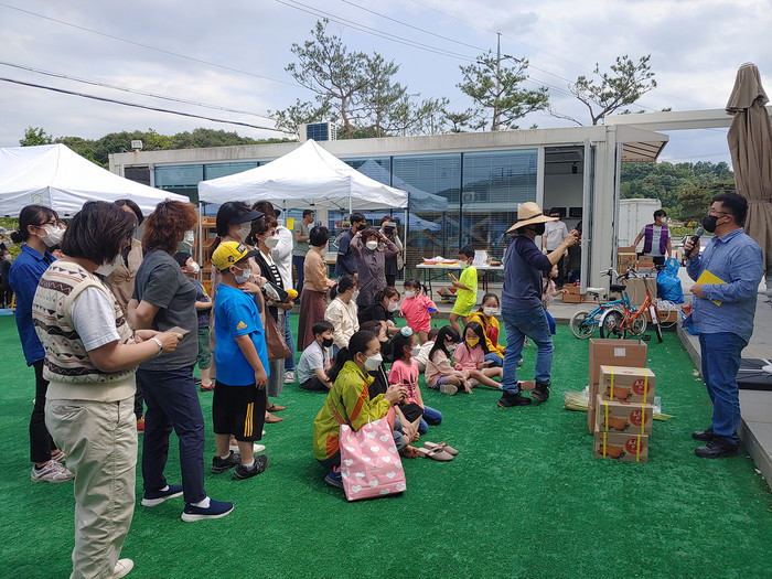 이번 장터는 ‘기후위기 공감대 형성’이라는 주제를 가지고 지역농산물 판매 및 농산물 경매, 기후 위기 전시마당, 재활용 물품으로 만든 화분에 영여자(주아) 심기 및 체험마당, 기후위기 사행시, 장기자랑, 놀이마당 등의 프로그램을 진행했다.