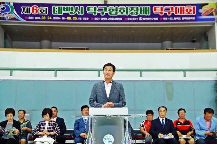[로컬세계 박상진 기자]제6회 태백시협회장배 탁구대회 개막식이 24일 류태호 태백시장을 비롯한 대회 관계자· 선수 등 300여 명이 참석한 가운데 고원체육관에서 열렸다.