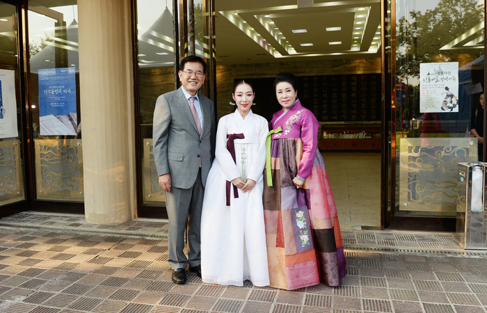 ▲유덕열 동대문구청장(왼쪽)과 종합대상 수상자인 노해진 명인(중간)과 채향순 한국전통예술 위원회 위원장(오른쪽)이 기념촬영을 하고 있다 |