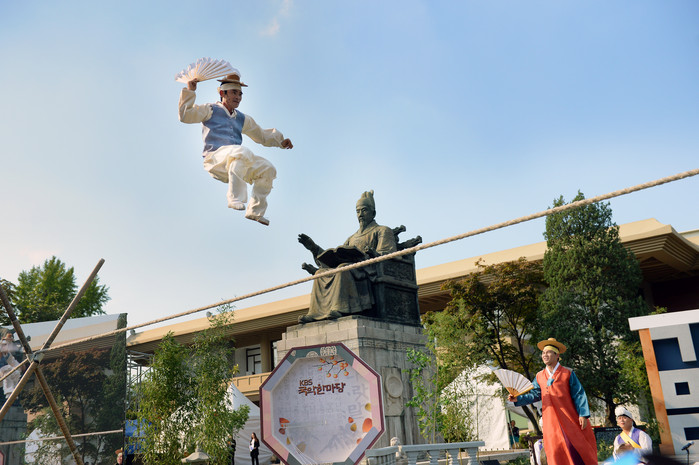 특히 22일에는 ‘KBS 국악한마당과 함께하는 여민동락’을 주제로 한 축하공연을 진행, 연희(줄타기) 일인자이자 국가무형문화재 제3호 남사당놀이 이수자인 권원태 대표와 채향순 중앙무용단을 비롯한 많은 예술인들이 독창적인 우리 전통예술의 고유한 멋을 선사했다.