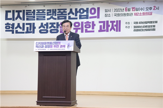 오늘(15일) 오후 국회의원회관 제2소회의실에서 열린 토론회는 ‘디지털플랫폼산업의 혁신과 성장을 위한 과제’라는 제목 아래 열띤 분위기 속에서 진행되었고 이준석 국민의힘 당 대표와 권성동 국민의힘 원내대표가 나란히 행사 현장을 찾아 축사를 전하며 토론회에 열기를 더했다.