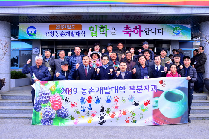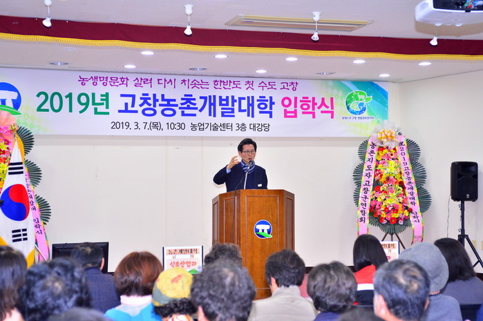 고창군은 7일 오전 농업기술센터 대강당에서 유기상 군수와 김만기 전라북도의회 의원, 기관사회단체장과 교육생 등 250여명이 참석한 가운데 ‘2019 농촌개발대학’ 입학식을 열었다.