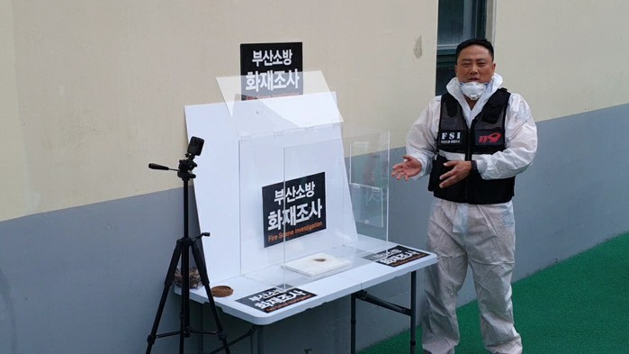 [로컬세계 맹화찬 기자]부산소방재난본부(본부장 변수남)은 여름철 모기향불 사용으로 발생할 수 있는 화재의 위험성에 대해 7일 소방본부 화재조사시험분석실에서 화재 재현 실험을 실시했다고 밝혔다.