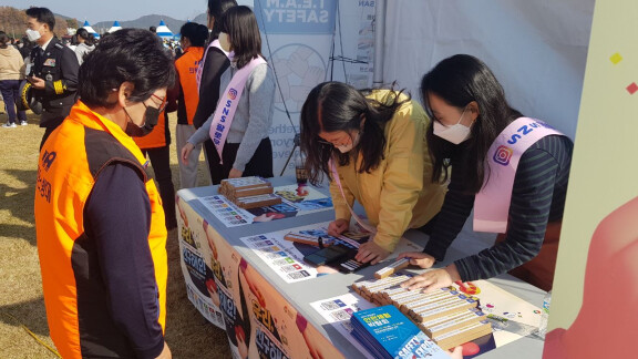 ▲경상남도 안전체험박람회에서 경남도 공식온라인 채널을 홍보하고 있다. 경남도 제공 |