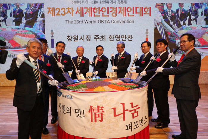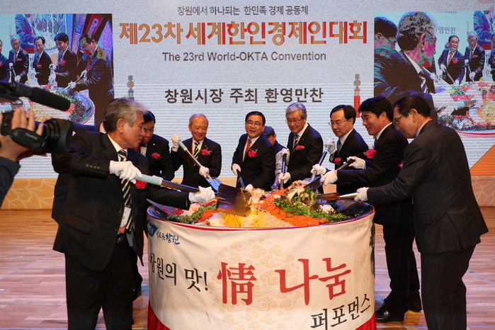 300인분의 대형솥을 이용해 창원시장과 월드옥타 주요인사 10여 명이 비빔밥을 함께 비비는 퍼포먼스로 창원을 찾은 세계 한인경제인에게 우리지역 특산물인 파프리카와 미더덕의 우수성을 홍보함과 동시에 창원시와 월드옥타 회원간 비빔밥을 먹으며 정을 나누는 시식행사도 진행됐다.