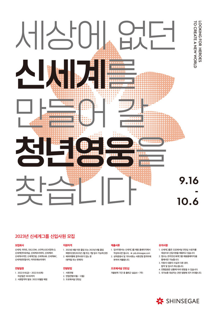 신세계그룹은 이번 신입사원 공개 채용 안내를 돕기 위해 주요 대학에서 온·오프라인 채용 설명회를 9월 말까지 진행할 예정이다.