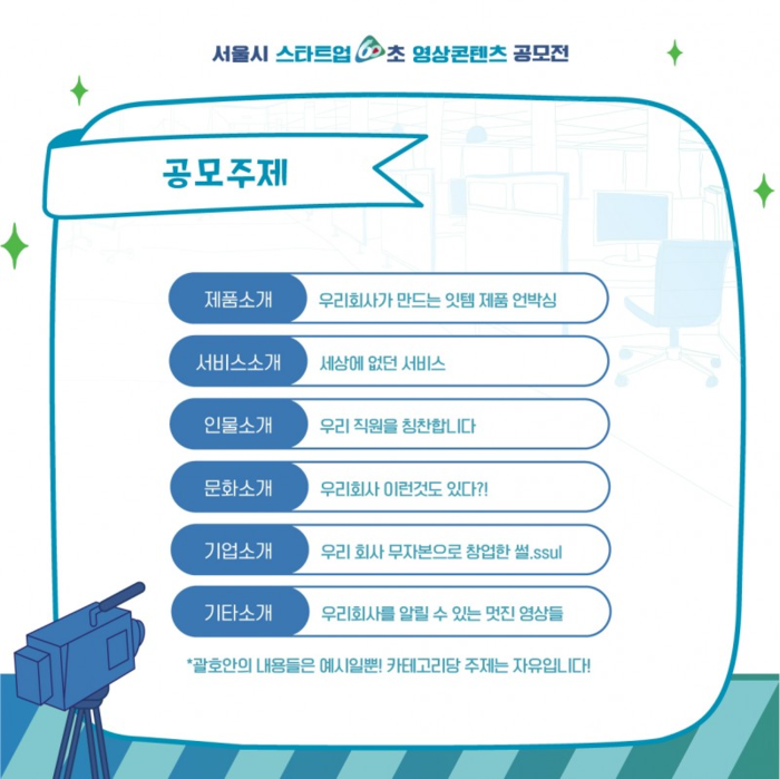 ▲서울시 스타트업 60초 영상콘텐츠 공모전 주제. |