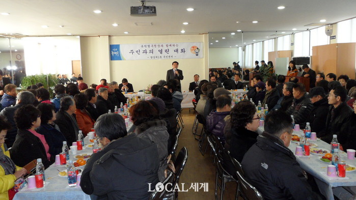 ▲ 주민과의 열린 대화 자리에서 새해 덕담을 하고 있는 유덕열(가운데) 동대문구청장 © 로컬세계 |