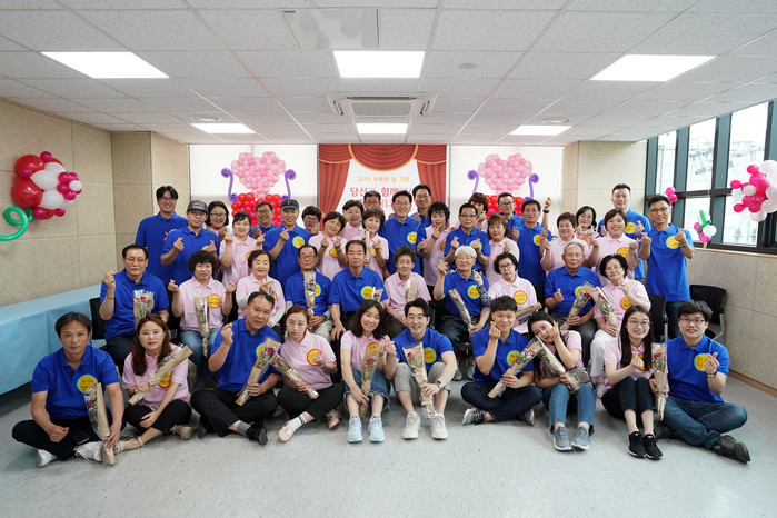 ▲18일 오후 2시, ‘2019 부부의 날 기념행사’에서 유덕열 동대문구청장 내외와 행사에 참여한 부부들이 기념촬영을 하고 있다. |