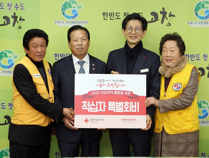 대한적십자사 전북지사는 유기상 고창군수와 조규철 고창군의회 의장에게 감사의 뜻을 전하며 2020년 적십자 특별회원증을 전달했다.