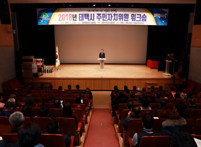 태백시 주민자치협의회(회장 이순재)가 주관한 이번 워크숍은 각 동별 주민자치위원과 류태호 태백시장, 김길동 태백시의회 의장 등 200여 명이 참석했다.