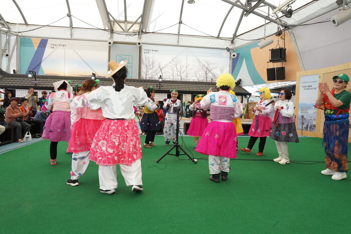 ▲시장 상인들이 축하무대를 선보이고 있다 |
