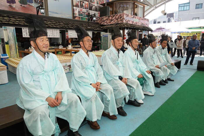 김부흥 회장 초헌관, 정선군의회 전영기 의장 아헌관, 전증표 정선읍장이 종헌관으로 기원제에 참여했다. 마침 5일장이 열려 시장 관계자와 관광객, 주민 등이 참석해 정선아리랑시장의 번영과 안전을 기원했다.