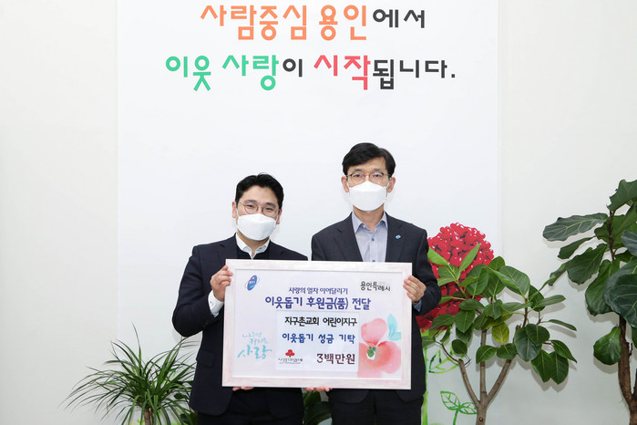| ▲용인시의 소외된 이웃 위해 성금 300만원 기탁. 용인시 제공 |