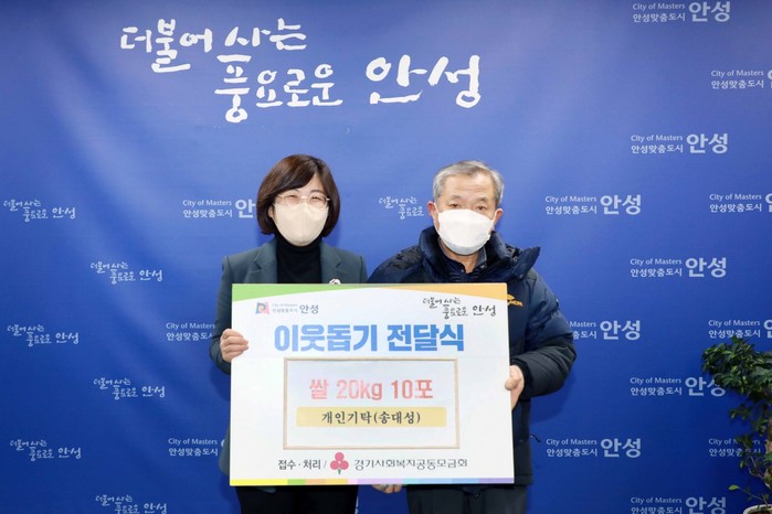 [로컬세계 김병민 기자]경기 안성시는 지난 24일 70대 할아버지가 시를 방문해 어려운 이웃들을 위해 써달라며 쌀 20Kg 10포를 기탁했다고 27일 밝혔다.