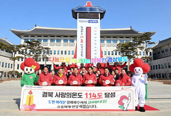 [로컬세계 = 이창재 기자]경북도는 1일 도청 앞마당에 설치된 사랑의 온도탑 앞에서 ‘경북 희망 2023 나눔캠페인 종료식’을 진행했다.