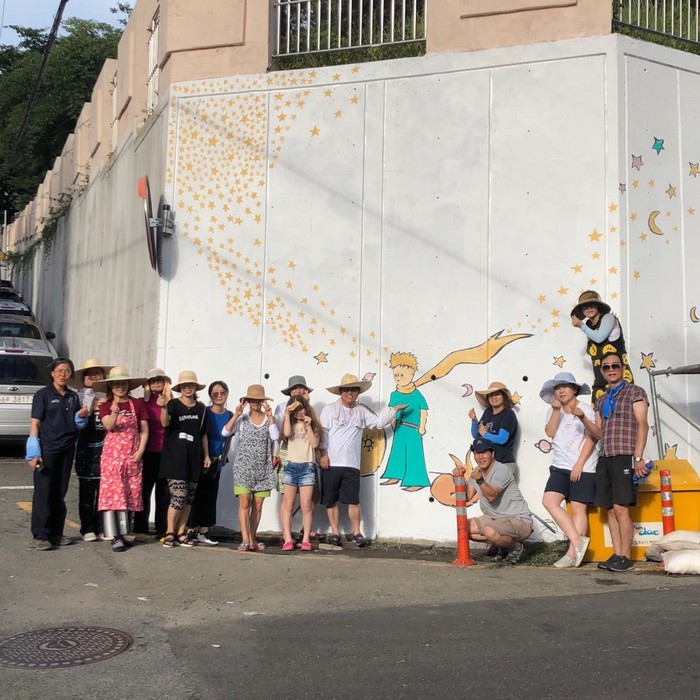 | ▲2018년 장산마루 작은도서관의 ‘별따러가자 꿈따러가자’ 벽화 거리 모습.(해운대구 제공) |