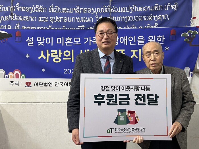 [로컬세계 = 이명호 기자]한국농수산식품유통공사는 설 명절을 앞두고 7일 사회복지단체 한국사랑나눔공동체를 방문해 기부금을 전달했다.