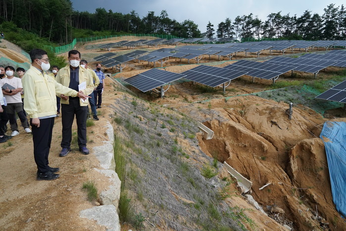 [로컬세계 임종환 기자]산림청은 25일 지난해 기록적인 폭우로 피해가 발생한 전라북도 장수군 소재 산지태양광 발전시설의 현장점검을 실시했다.