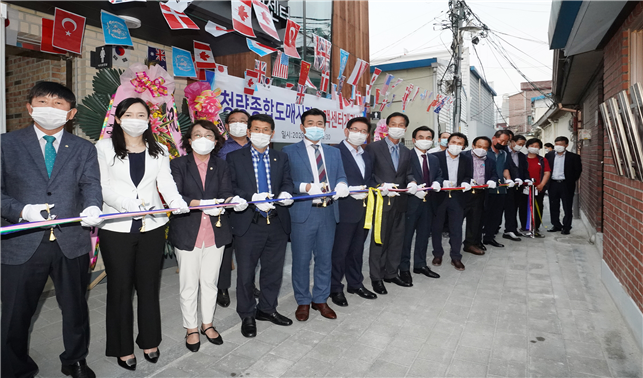 이날 행사는 코로나19 영향으로 유덕열 구청장을 비롯해 지역 국회의원, 시·구의원, 시장상인 등 최소한의 내빈들만 참석한 가운데 조성 경과 보고, 감사패 전달, 기념사, 축사, 테이프 커팅식 등의 순으로 진행됐다.