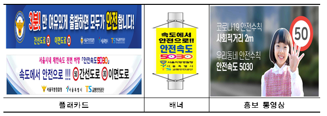 서울시내 주요도로에 플래카드는 244개소, 안내배너는 155개소에 설치했고 서울시내 주요 전광판에 영상물을 상영하는 등 안전속도5030 홍보활동을 강화했다.