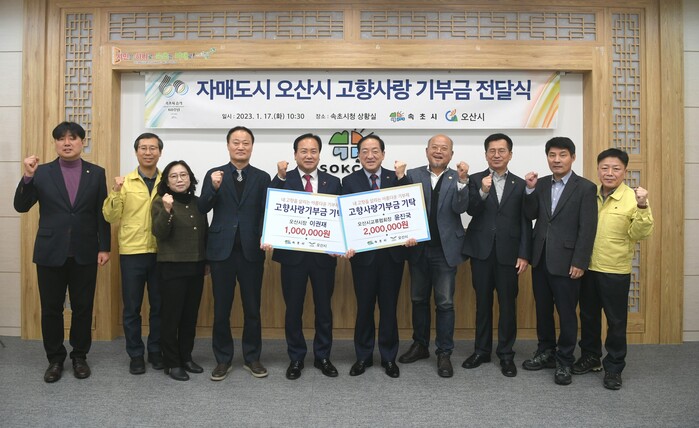이번 기탁식은 올해 시행된 고향사랑 기부제에 발맞춰 자매도시인 오산시와 속초시의 상생 발전과 지속적인 교류 관계 도모를 위해 오산시의 제안으로 이루어졌다.