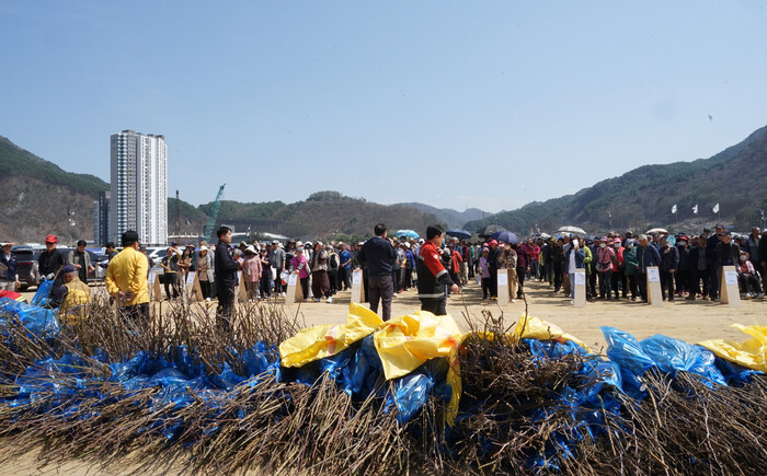 지난 12일 정선군 공설운동장에서 제49회 식목일 기념 나무 나누어주기 행사가 열렸다. 최승준 군수, 전영기 정선군의장, 주민 500여명이 참석했다.