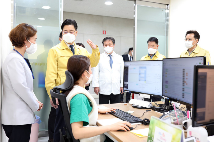 [로컬세계 고기훈 기자]오병권 경기도지사 권한대행이 23일 코로나19 재택치료 관리의료기관이자 외래진료센터가 설치된 경기도의료원 이천병원을 방문해 운영 현황을 살펴보고 의료진을 격려했다.