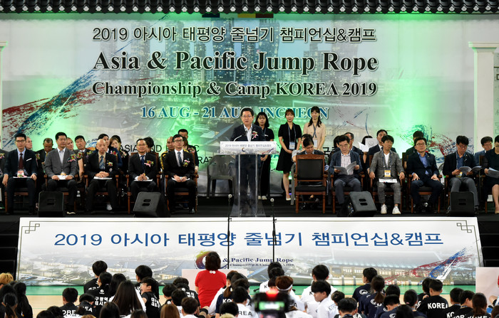 [로컬세계 이민섭 기자]인천시는 ‘2019 아시아·태평양 줄넘기 챔피언십 대회’ 개막식을 16일 남동체육관에서 열었다. 이번 대회가 국내에서 열리는 것은 이번이 처음이라고 밝혔다.