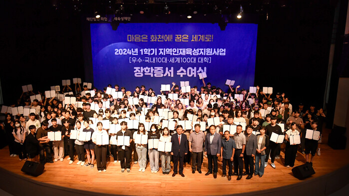재단은 지난 25일 화천읍 문화예술회관에서 지역 출신 대학생들이 참석한 가운데 2024년 1학기 장학증서 수여식을 개최했다.