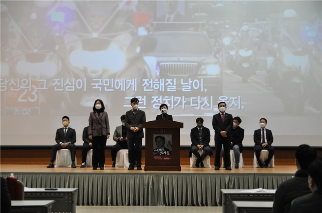 윤석열 후보는 영상 축사를 통해 "정치를 결심할 때 김영삼 전 대통령이 남기신 과감한 개혁과 통합의 면모는 큰 귀감이 되었다"라면서, "김영삼 전 대통령이라면 어떻게 하셨을까? 라는 마음을 품고 그분이 남기신 통합과 화합의 유지를 실현하는 정치를 이어가겠다"고 말했다.