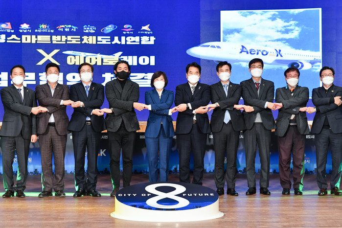 미래형스마트반도체 도시연합은 이날 에어로케이항공(주)과 업무협약을 체결했다. 협약에 따라 에어로케이항공은 내년 1월부터 8개 도시 시민에게 국내선(청주-제주 노선) 운임(정가 기준)을 10% 할인해주기로 했다.