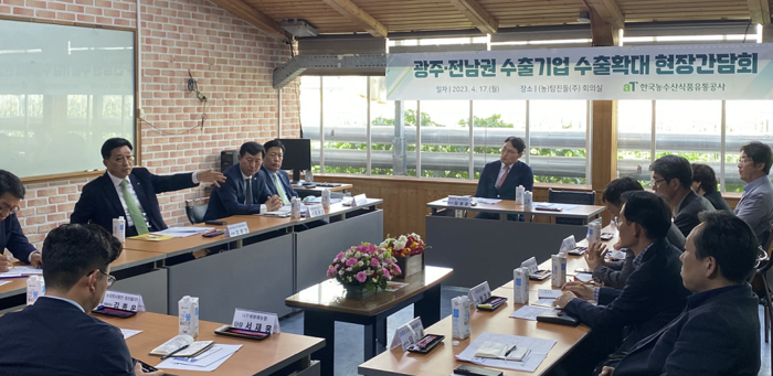 한국농수산식품유통공사(사장 김춘진)는 17일 전라남도 강진군에 위치한 농업회사법인 탐진들㈜에서 올해 농수산식품 수출 목표 135억 달러 달성을 위한 ‘광주·전남권 K-푸드 수출기업 수출 확대 현장간담회’를 개최했다.