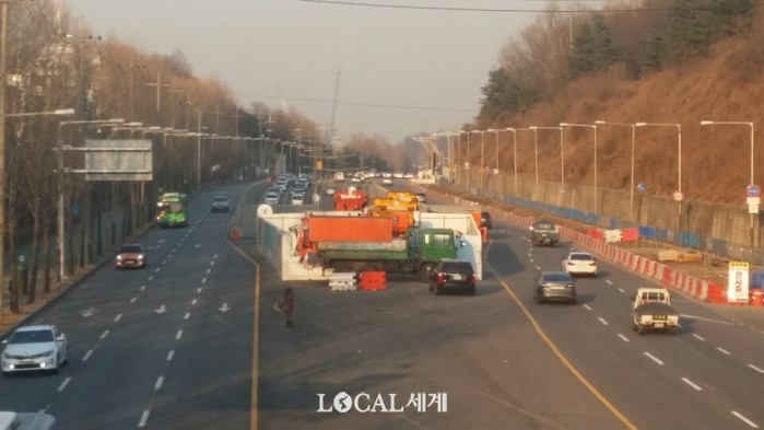 ▲구룡터널 입구 양재대로 지하차도 공사현장. |