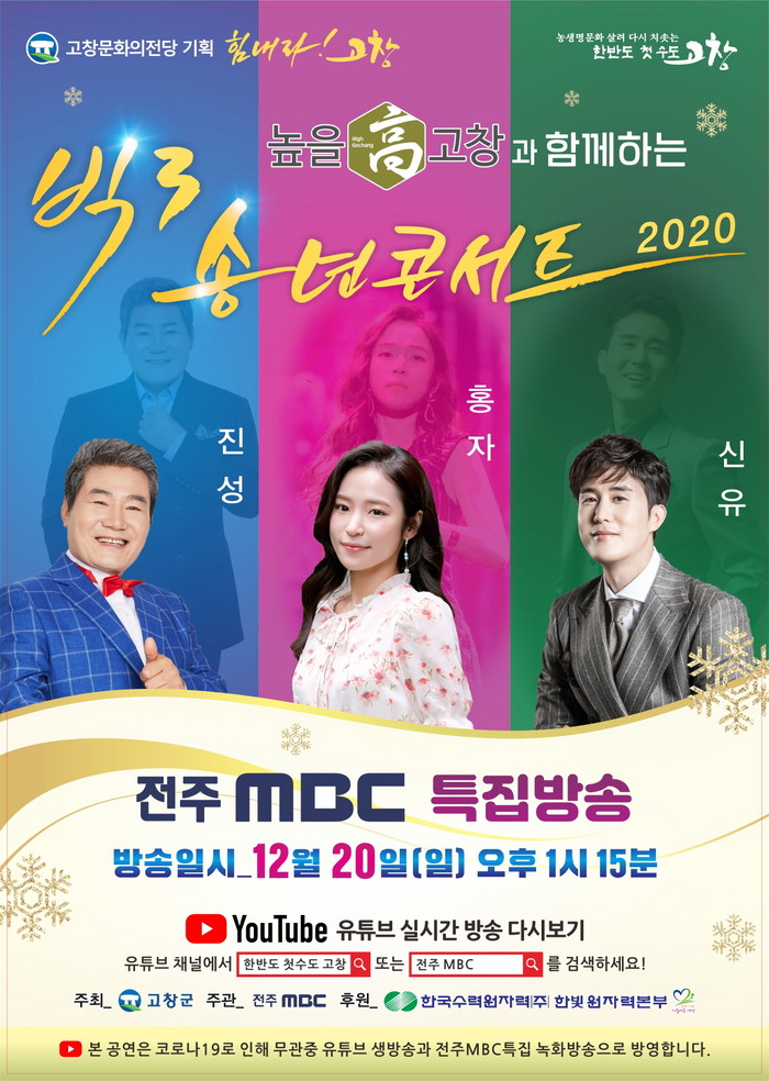 [로컬세계 김경락 기자]전북 고창군이 ‘높을고창과 함께하는 2020 송년콘서트’를 전주MBC와 특집방송으로 준비해 오는 20일 오후 1시15분에 방영한다.
