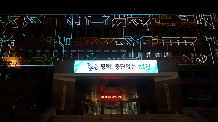이번 프로젝트는 평택시 송탄출장소 외벽에 빛을 활용한 라이팅 아트(Lighting Art)를 설치, 대형 예술 작품을 대중적 시선으로 선보이는 공공미술이다. 이번 작품은 송탄지명 속의 ‘푸른 소나무’를 모티브로 하여 ‘용비어천가’ 중 “뿌리 깊은 푸른 남관”을 한글 전각체를 디자인하고, 현대적인 LED 라이팅 기술인 “디밍(dimming)기술”을 이용한 효과를 통해 실시간으로 변화하는 조명 연출 기법을 사용하여 쉽게 볼 수 없는 새로운 이미지를 연출해 평택시가 만들어가는 “첨단도시”, “신성장”이라는 의미를 담아내는 작품이다.