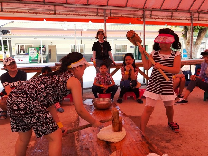 ▲21일(토), 경기도 양평에서 진행된 ‘드림여름방학-여름농촌체험’에 참가한 가족이 떡메를 치고 있다.(동대문구 제공) |