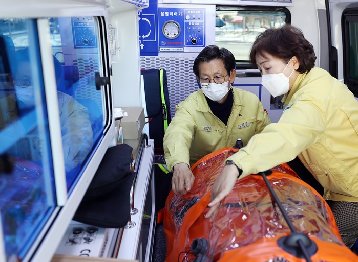 음압구급차는 2억원 전액을 국비로 확보해 응급구조장비세트, 환자감시장치, 저출력심장충격기와 음압캐리어(환자이송 들것)를 비롯해 차량내부에 음압시스템이 설치돼 있다.