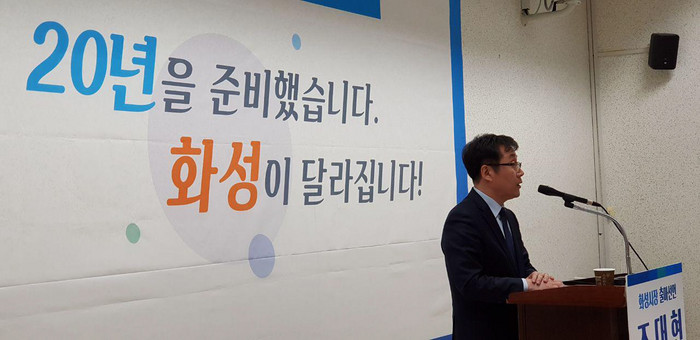 조대현 전 대변인은 출마선언을 통해 "인구 100만을 바라보는 거대도시 화성의 주요 현안은 기초 지방자치단체 차원을 벗어난 의제"라며 "광역자치단체는 물론 국가수준의 의제를 다룰 능력과 안목, 네트워크를 필요로 한다"고 지적했다.