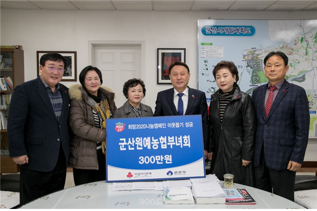 전북 군산원예농협(조합장 고계곤) 부녀회가 지난 8일 군산시를 찾아 형편이 어려운 이웃을 위해 써달라며 300만원을 기탁했다. 더불어 저소득 노인과 장애인 무료급식소를 운영하고 있는 사회복지 시설·단체인 (사)예사봉사단(단장 김도경)에 쌀 400kg를 기증했다.