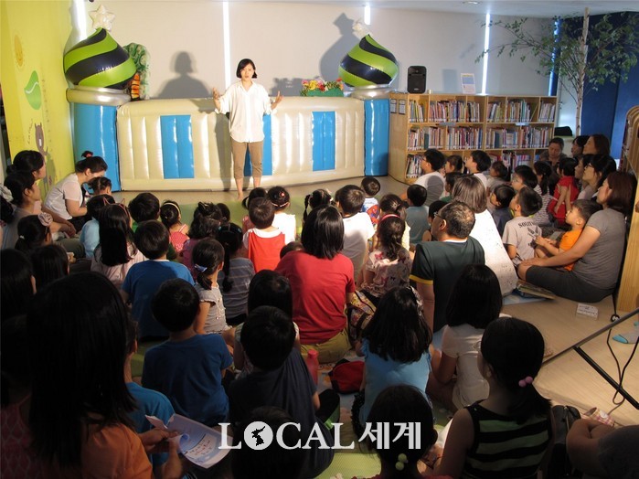 ▲ 5일 성동도시관리공단은 성수도서관에서 다문화 어린이와 학부모들을 초청 '겁쟁이 아기공룡 티라노' 인형극 공연을 마련했다. © 로컬세계 |