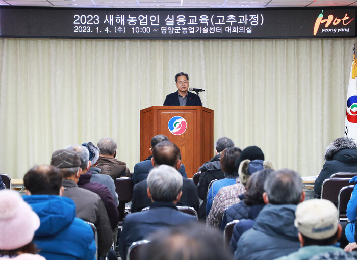 [로컬세계 = 이창재 기자] 경북 영양군(군수 오도창)은 4일부터 오는 31일까지 농업인 1,840명을 대상으로 6과목 13회에 걸쳐 고품질 고추, 사과 등 농.특산물 생산을 위한 새해 농업인 실용교육을 실시한다.