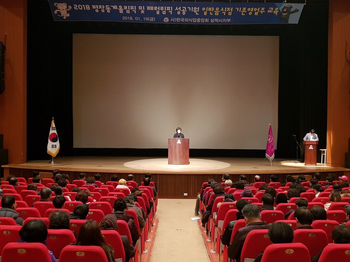 [로컬세계 김재덕 기자]한국외식업중앙회 삼척시지부는 지난 19일 오후 2시 삼척문화예술회관 대공연장에서 관내 일반음식점 영업자 800여 명을 대상으로 '2018평창올림픽 및 패럴림픽 성공기원 일반 음식점 기존 영업주 교육'을 실시했다.
