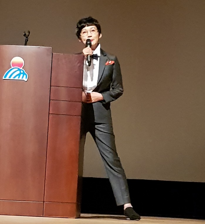 ▲개그우먼 팽현숙이가 포즈를 취하며 강연을 하고 있다. |