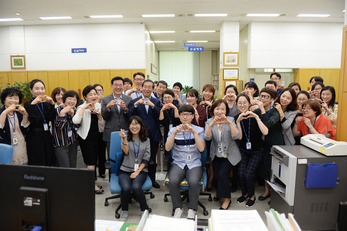 ▲박원순 시장이 유덕열 구청장, 구청 직원들과 기념촬영을 하고 있다. |