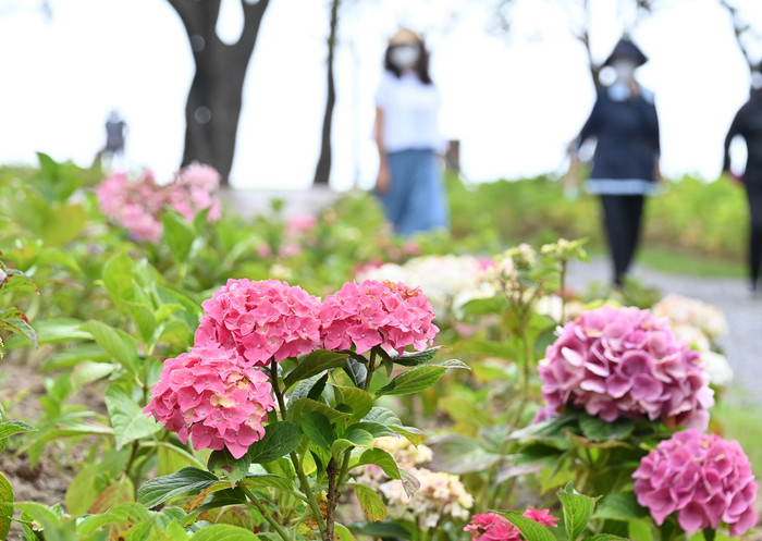 지난 6월에는 해운대공원 9천㎡에 9종의 수국 5000여 본을 심었다. 겨울에는 동백꽃, 여름에는 수국이 피는, 사계절 꽃을 볼 수 있는 공원으로 만들기 위해서다.